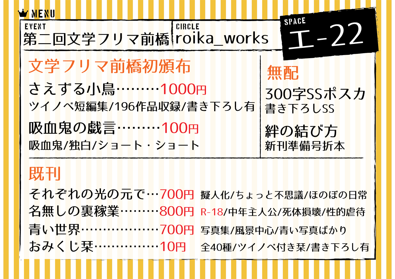 roika_worksは、エ-22のスペースを頂きました。
