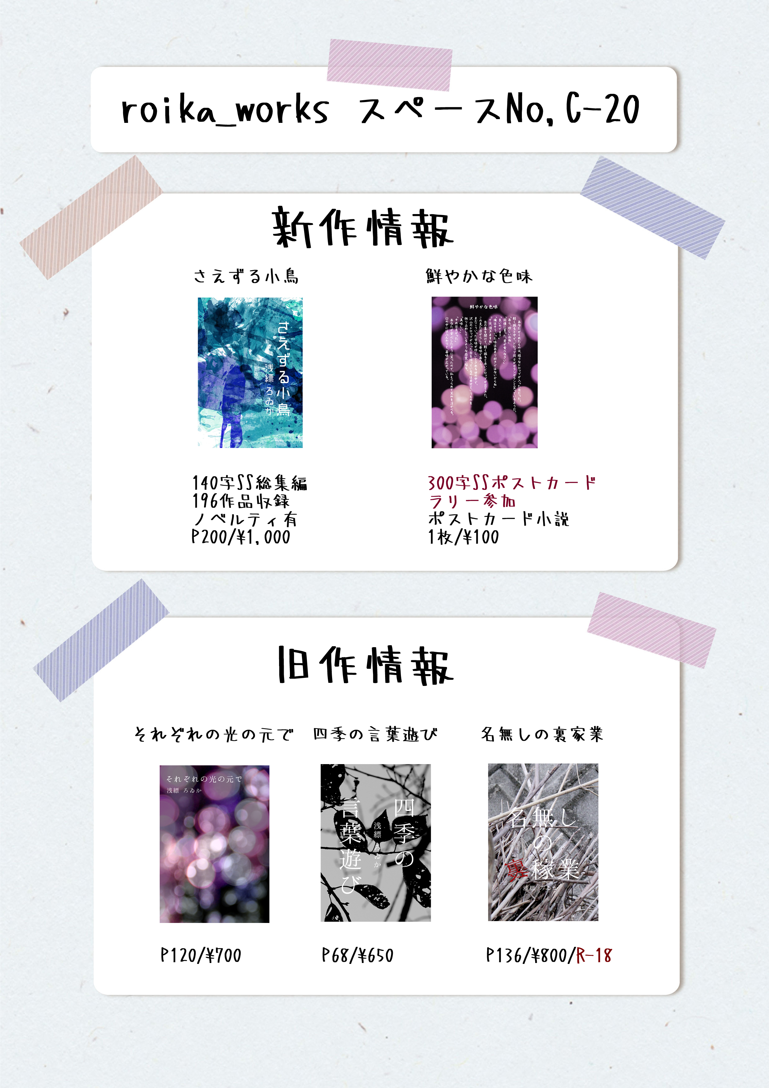 無料配布の折本やペーパーもありますので、お気軽に「C-20」まで遊びに来て下さいね。